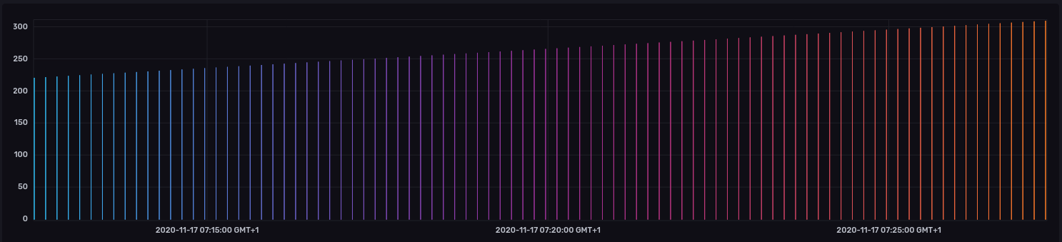 While we calucalted the mean values for each timestamp, this also resulted in separate tables consisting of a single value. We can use the group() function to ungroup data, that is, to merge all tables into a single table.